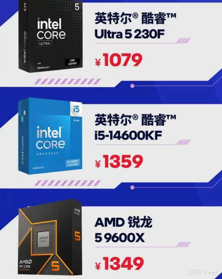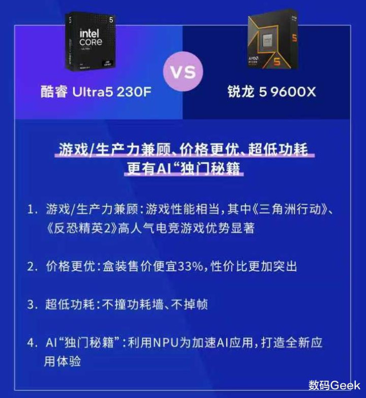 在基础性能相近的情况下,价格和特色功能就成为影响购买决策的关键因素。在这一维度上,Intel U5系列展现出全方位的优势。价格方面,U5系列245K/KF、225/230F明显更具竞争力。在提供相近性能的前提下,更低的售价直接降低了整体装机预算。